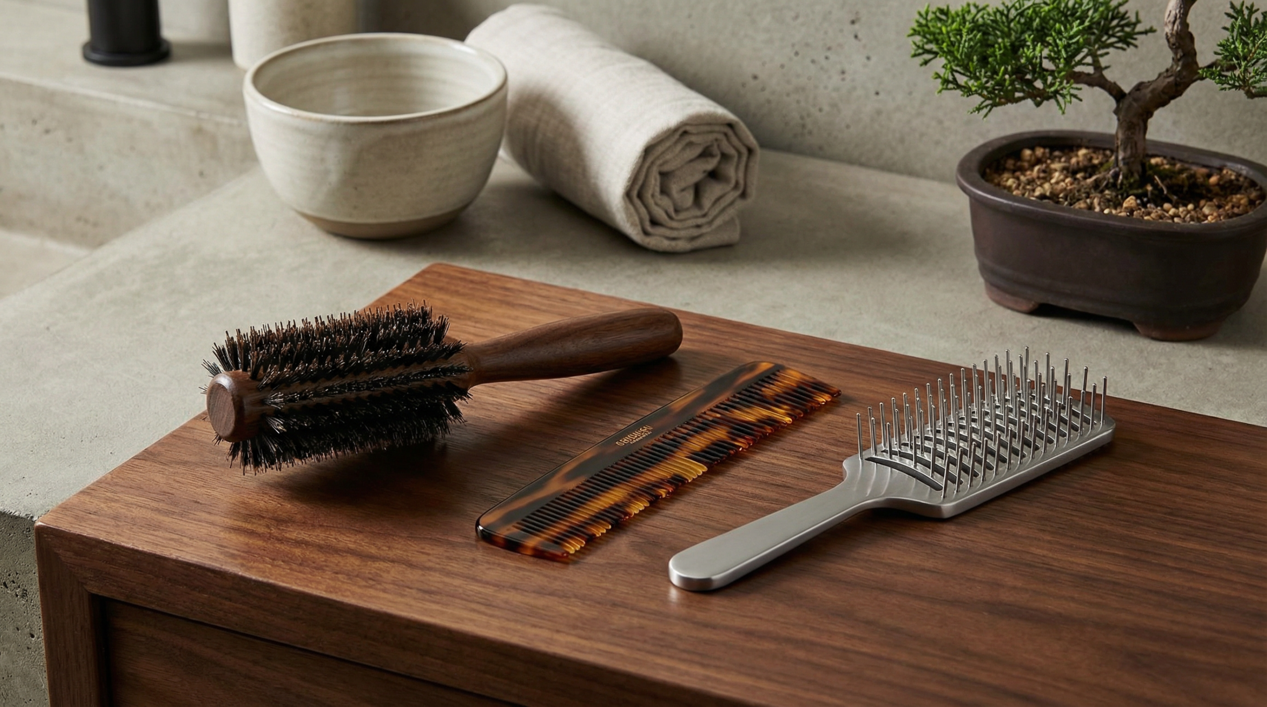 • ウッドブラシ:木製のピンは静電気防止効果があり、頭皮に優しいため敏感肌の方にも向いています。